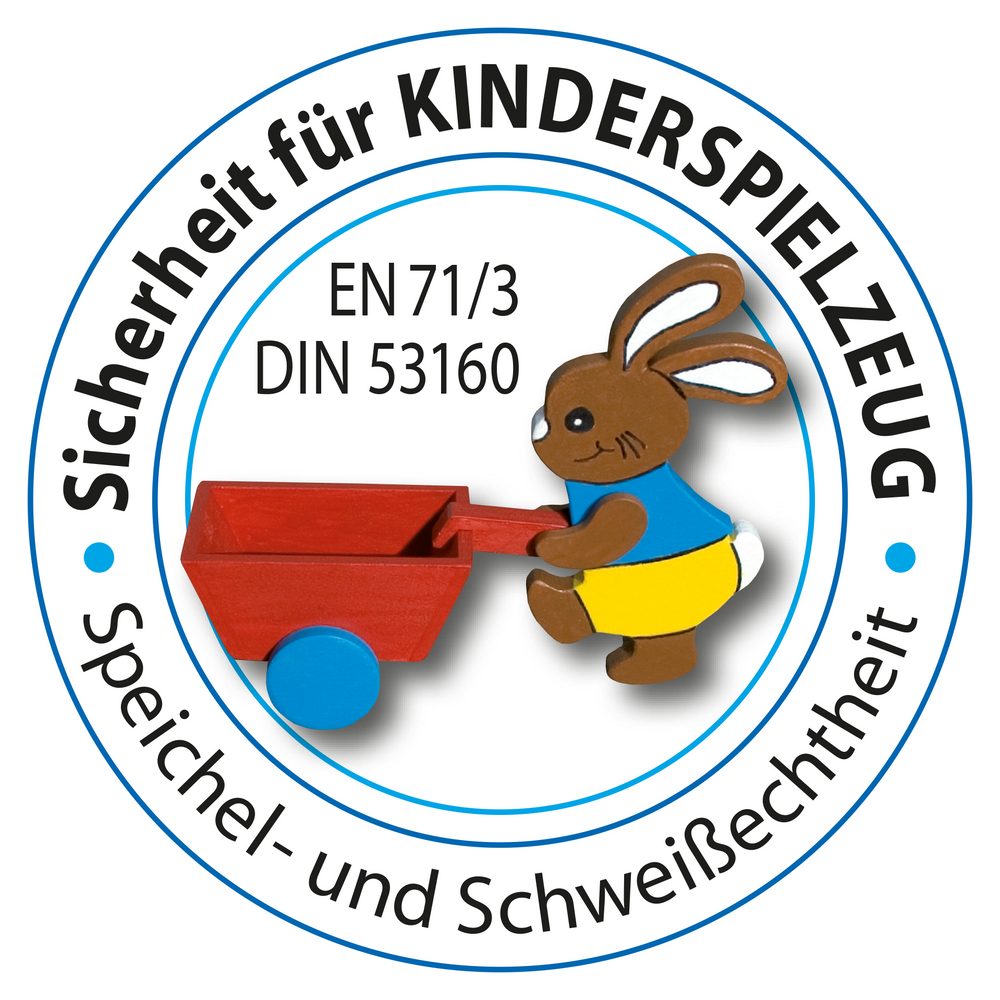 Resistant to saliva and sweat (DIN 53160) Suitable for children's toys (DIN EN 71-3)